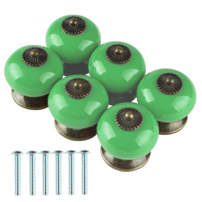 Larcele vintage cabinet knob door knob ceramic handles for drawer,4 pcs/ 2 pcs. Round,Set CTLS-01 (Green,6 pieces)