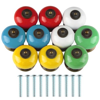 Larcele CTLS-01 Vintage Cupboard Knob Door Knob Ceramic Handles for Drawer, Round, Pack of 10 (Mixed Colours)