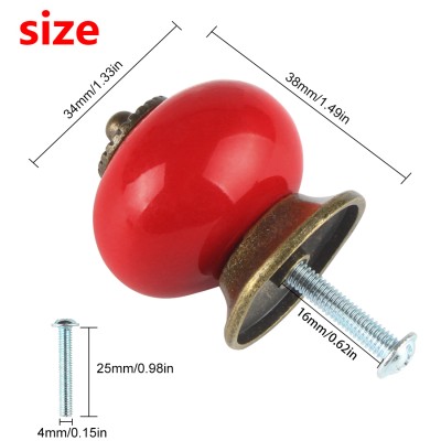 Larcele vintage cabinet knob door knob ceramic handles for drawer, 2 pieces, round, set CTLS-01 (red)